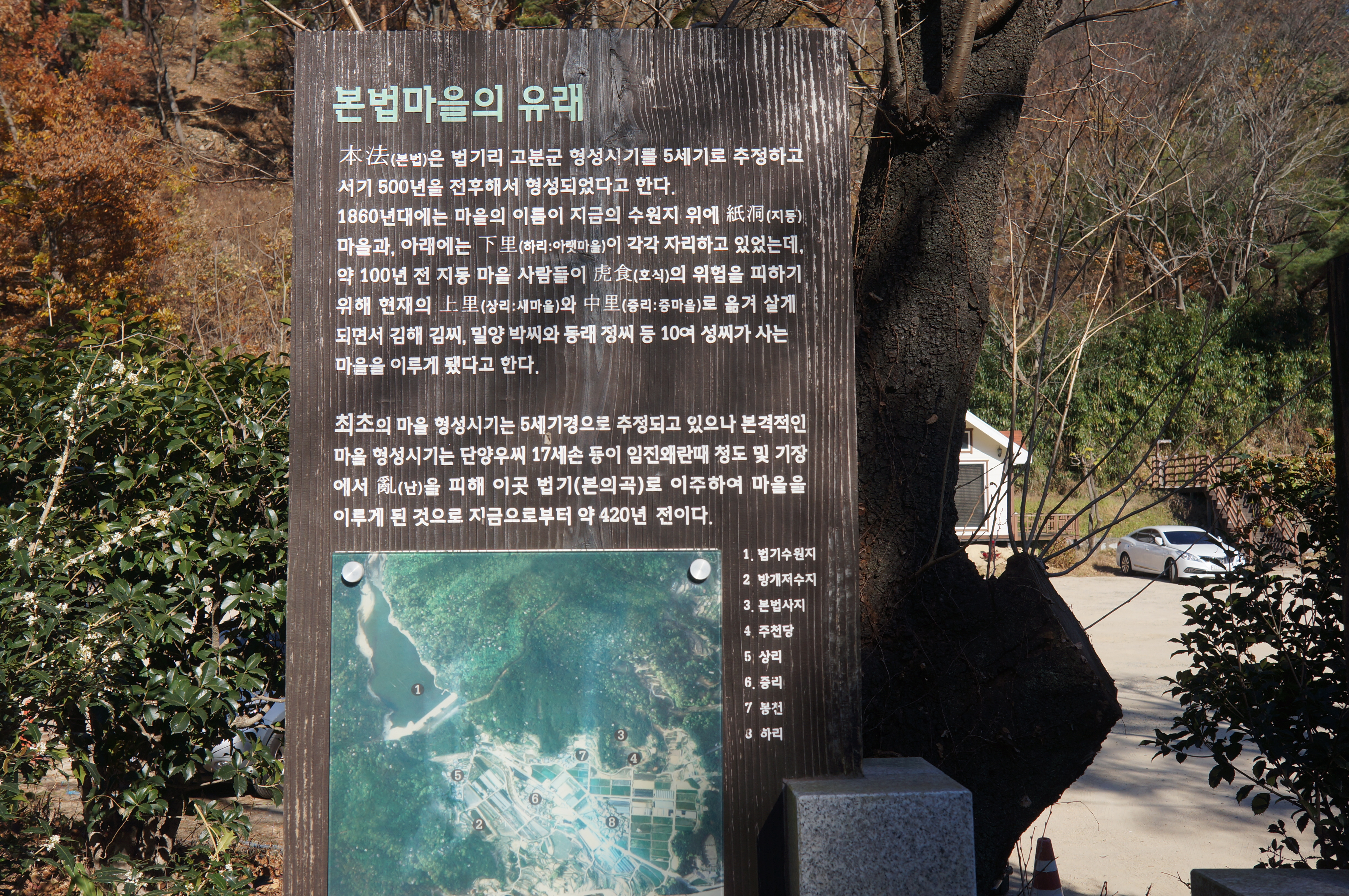 자가용을 이용한다면 법기수원지 주차장 또는 법기수원지로 네비게이션 검색을 해서 오면 되는데, 마을 무료주차장은 법기수원지에서 살짝 떨어져 있으니 법기수원지 앞 민간 주차장을 이용하셔도 괜찮습니다.
