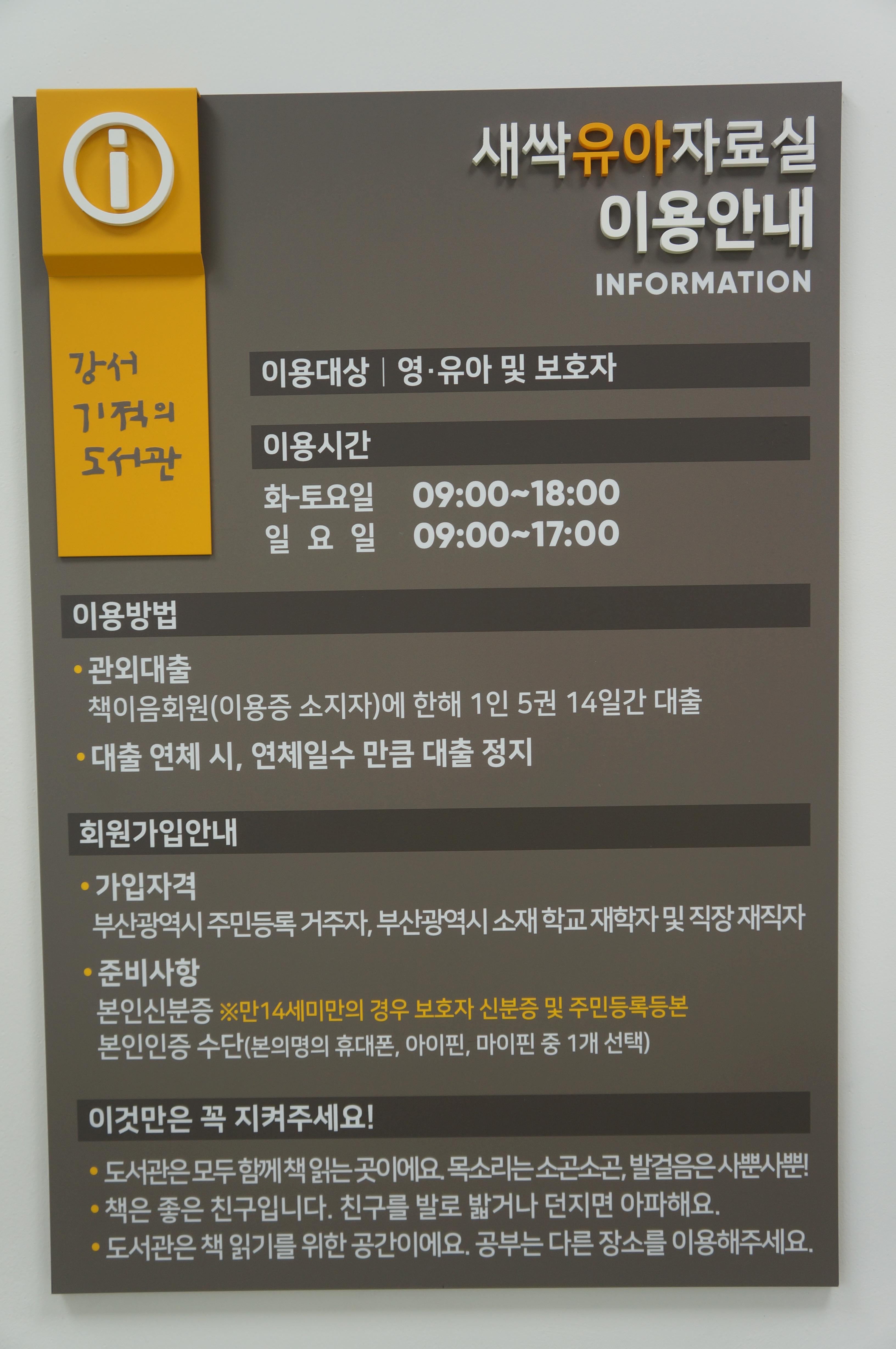 소규모의 도서관으로서 도서 보유량이 많지는 않지만 유아와 어린이를 위한 책들이 충분한 편이고 독서의 재미와 습관을 길러주기에 좋은 곳 입니다.
