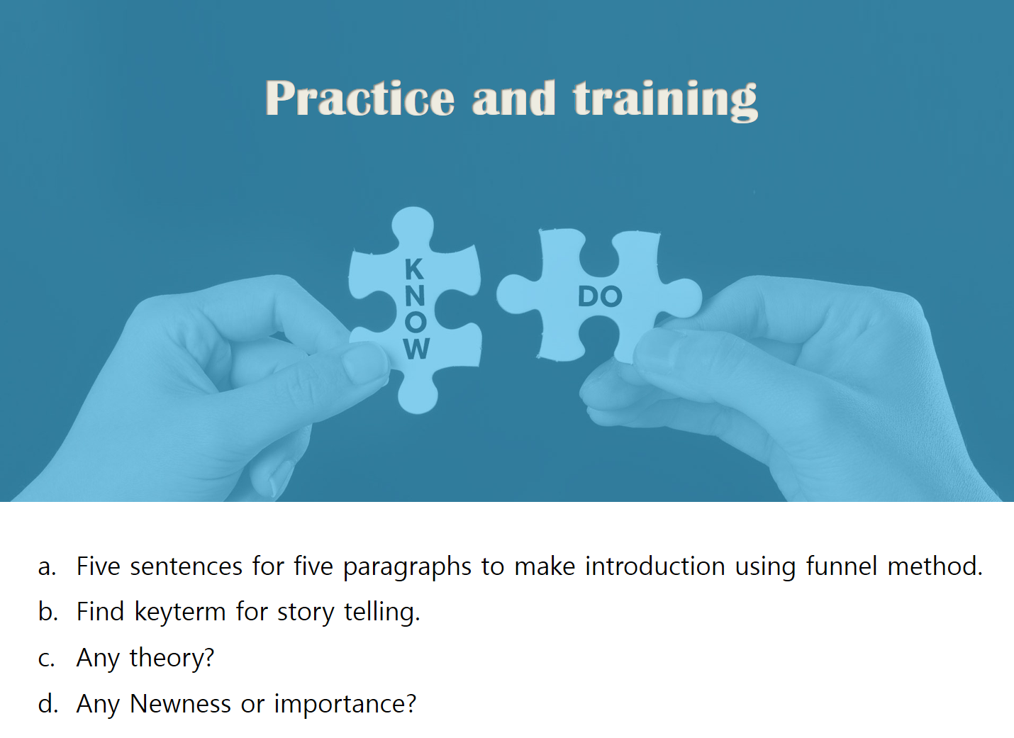아래 색깔로 표현 되어 있는 각 핵심문장의 'Keyterm' 의 반복을 유심히 봐 주시면 좋을 것 같습니다.